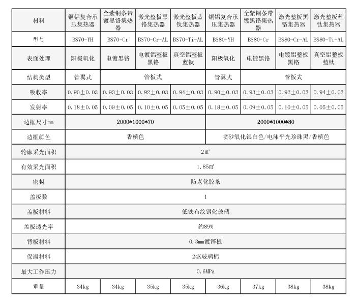 邊框:邊框采用鋁合金1.2mm氧化處理后,又一次烤漆處理,增加了使用年限及美觀性。背板:集熱器背板采用國際先進(jìn)的一體滾壓技術(shù),確保產(chǎn)品具有更好的機(jī)械性能及保溫效果。