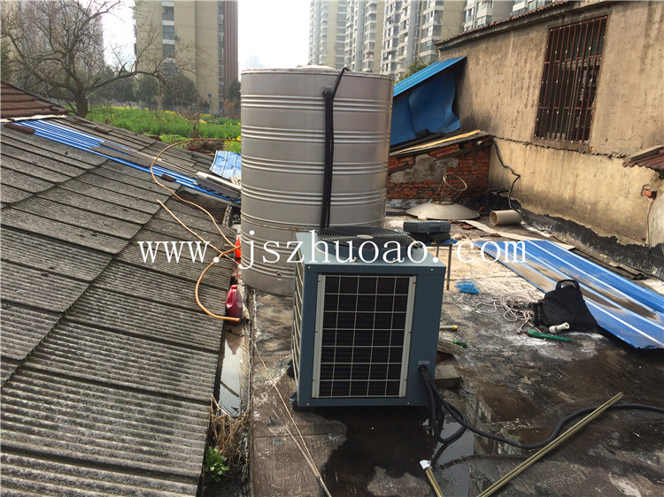 工程介紹:1臺5匹空氣能,1臺3噸不銹鋼保溫水箱,員工下班洗澡熱水55度。
